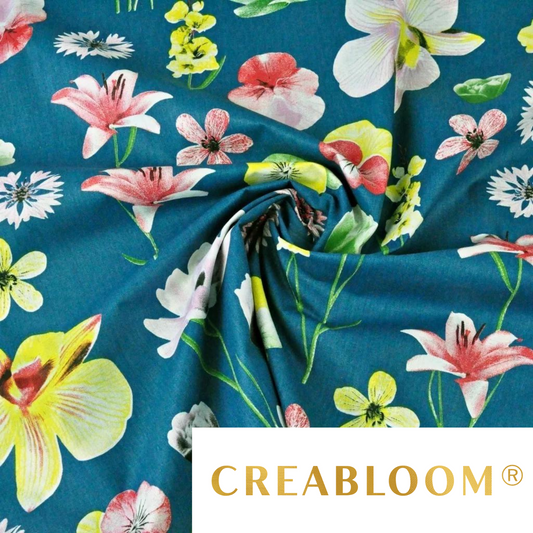 Tissu coton imprimé grands motifs pissenlits - gris et beige fond beige/gris