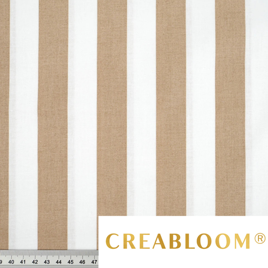 Tissu coton imprimé rayures blanc et beige