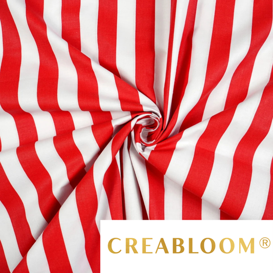 Tissu coton imprimé rayures blanc et rouge