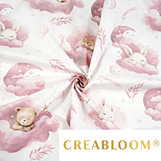 Tissu coton Motif animaux dans les nuages - vert sauge