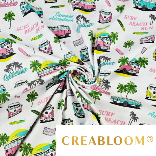 Baumwollstoff mit Muster von Motorrädern und Oldtimern