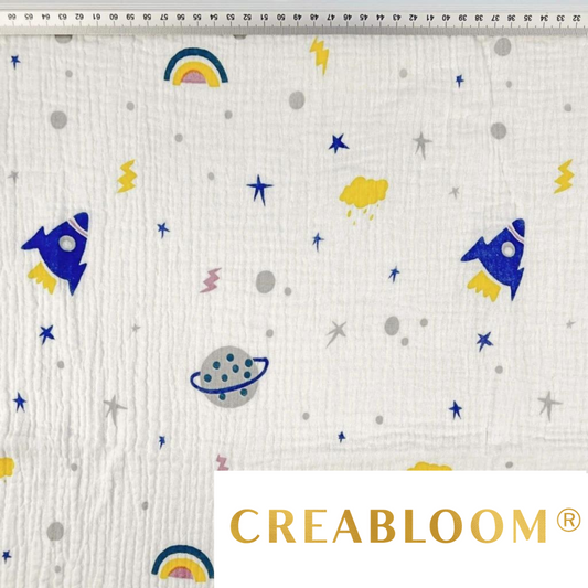 Double Gauze-Stoff mit bedruckten Raketen und Planeten
