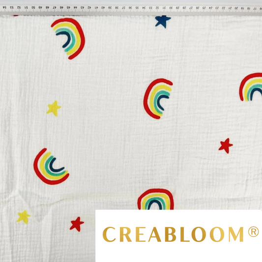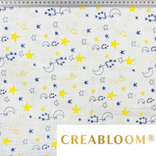 Bedruckter Doppelgazestoff mit Sternen und Monden