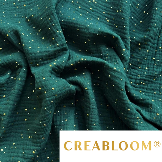 Grüner Double-Gauze-Stoff mit kleinen goldenen Punkten