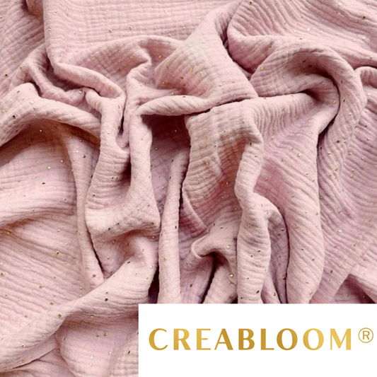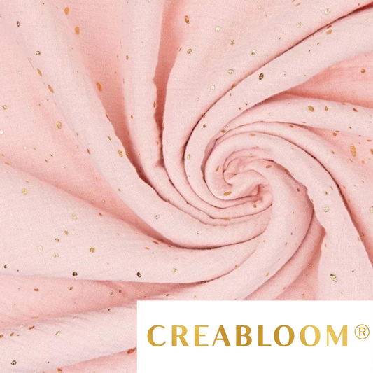 Rosa Double-Gauze-Stoff mit kleinen goldenen Punkten