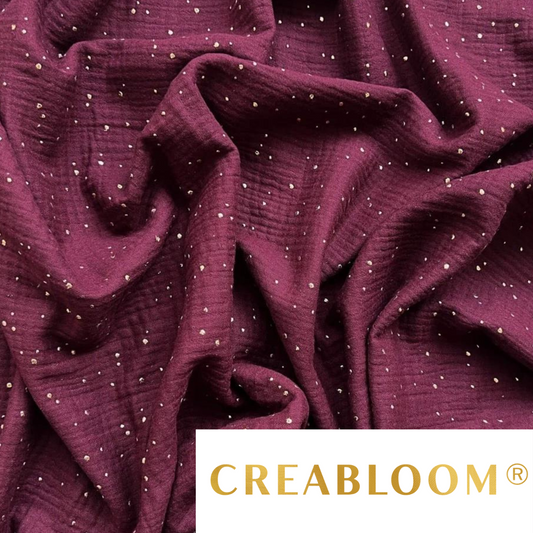 Burgunderroter Double-Gauze-Stoff mit kleinen goldenen Punkten