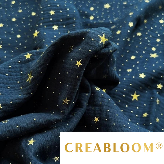 dunkelblauer Double-Gauze-Stoff mit goldenen Sternen