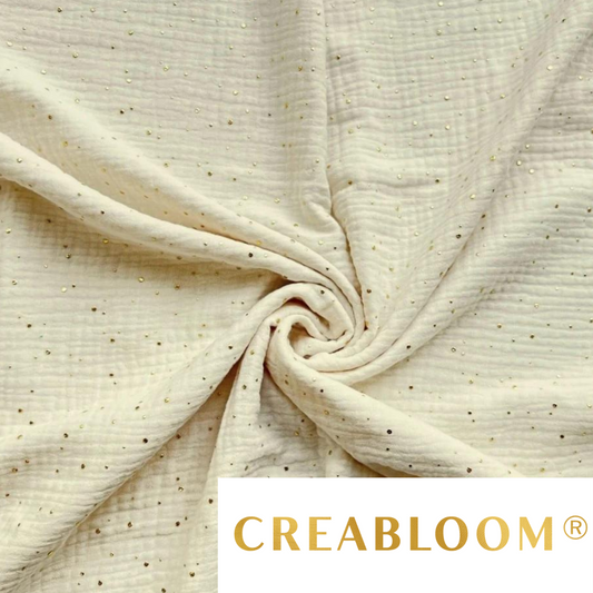 Elfenbeinfarbener Double-Gauze-Stoff mit kleinen goldenen Punkten