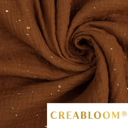 Hellbrauner Double-Gauze-Stoff mit kleinen goldenen Punkten