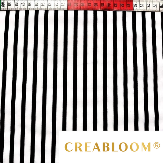 Bedruckter Baumwollstoff mit weißen und schwarzen Streifen