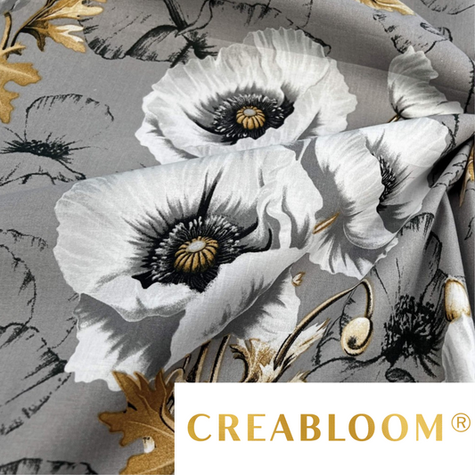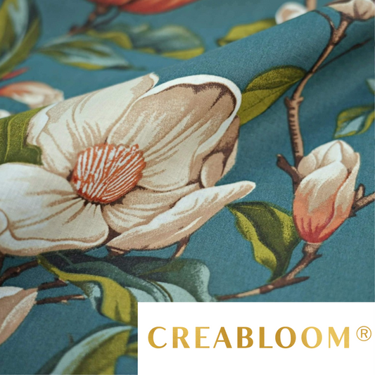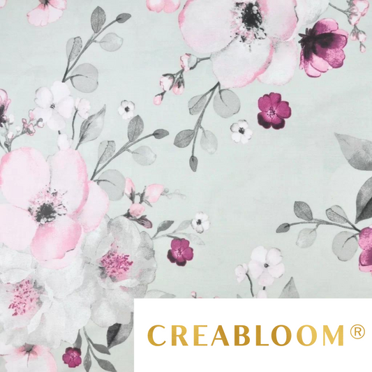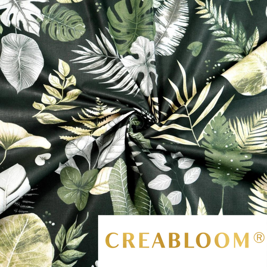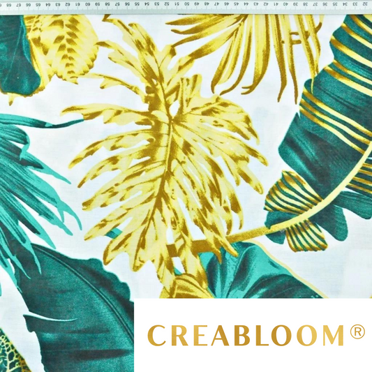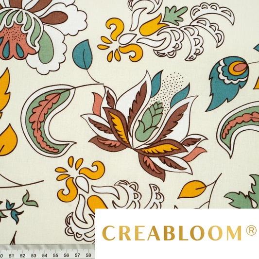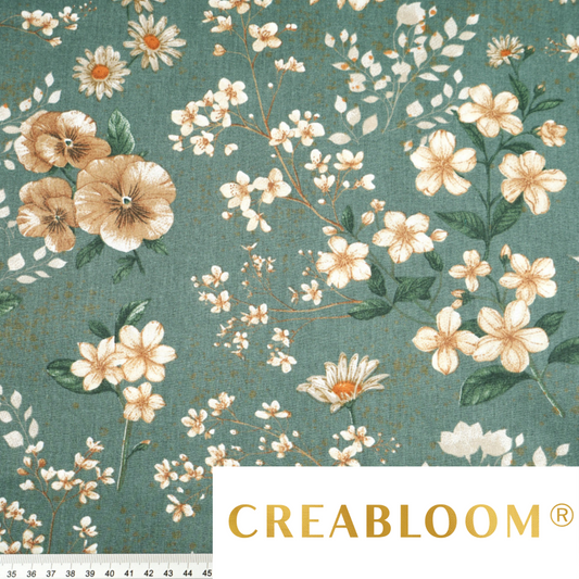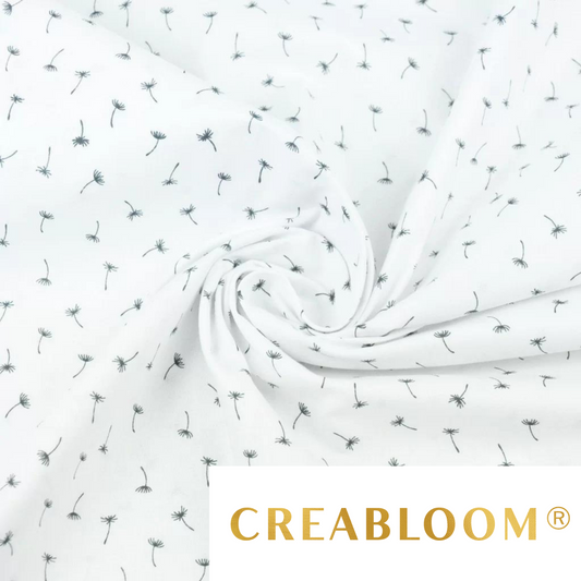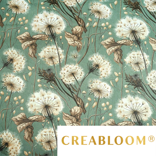 Tissu coton imprimé grands motifs pissenlits - beige fond vert sauge