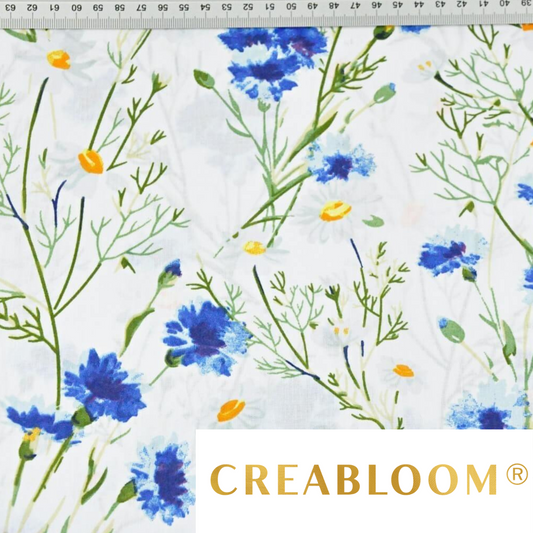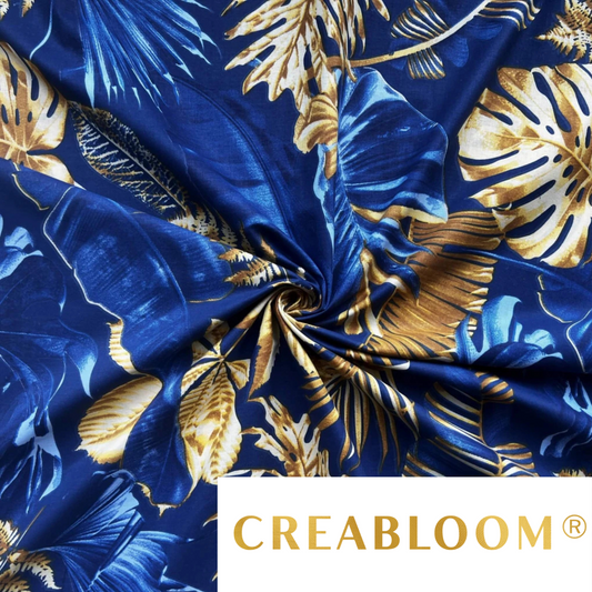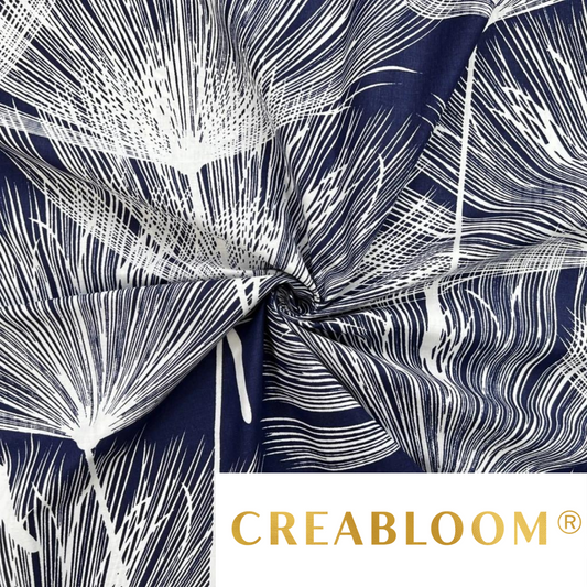 Tissu coton imprimé grands motifs pissenlits - bleu marine