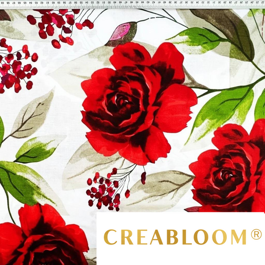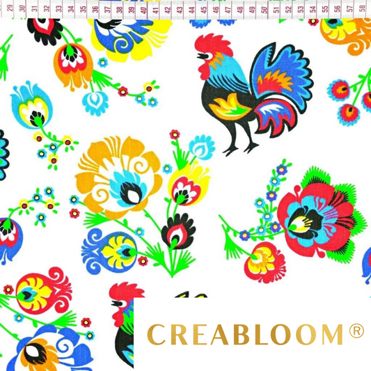 Baumwollstoff mit Hahnen- und Blumenmuster
