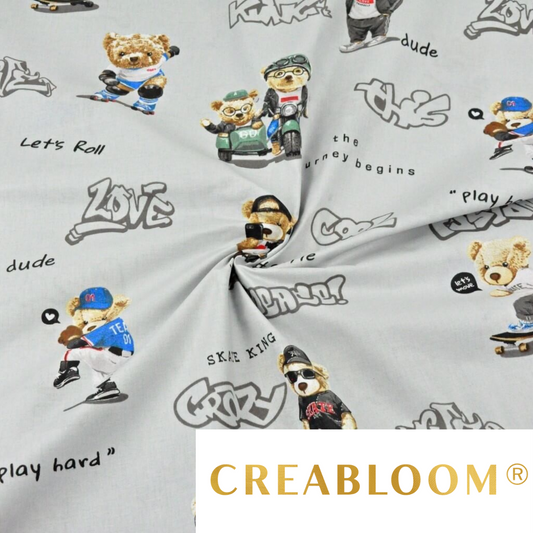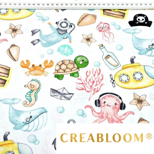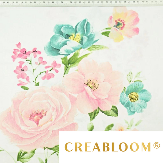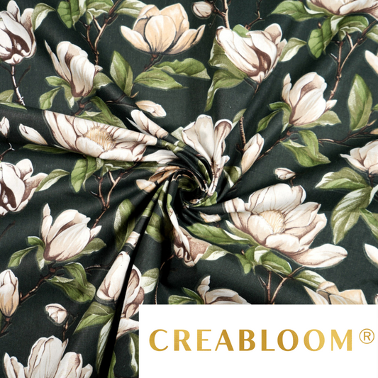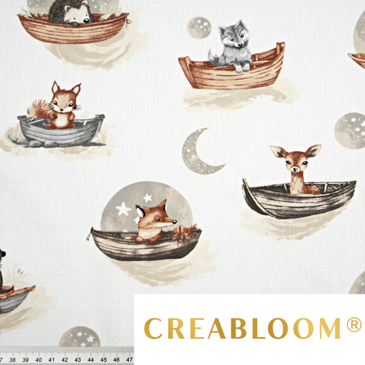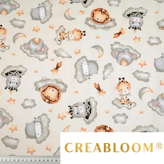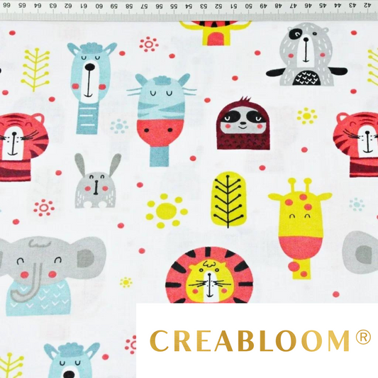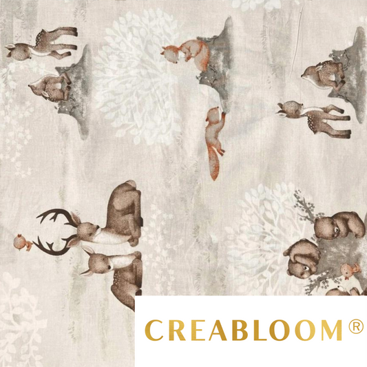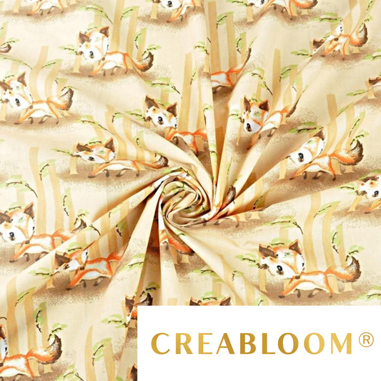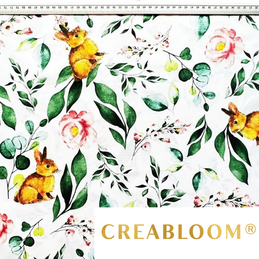 Bedruckter Baumwollstoff mit Blumen und Hasen