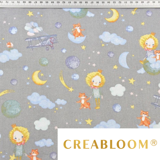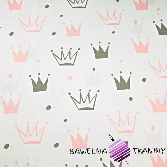 Baumwollstoff Kronenmotiv - Grau und Rosa