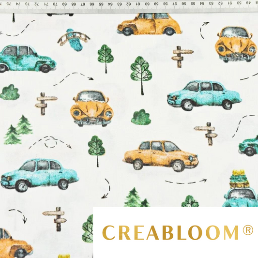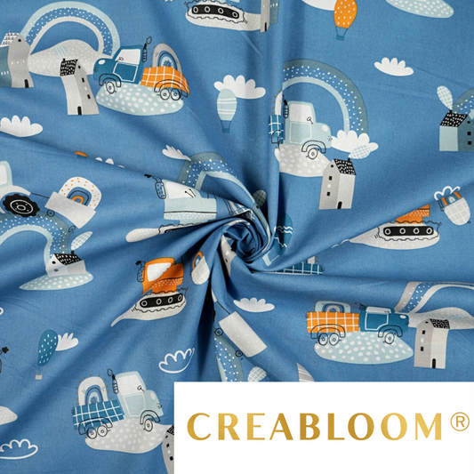 Baumwollstoff mit Baustellenfahrzeugmuster