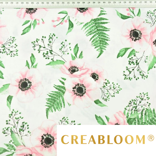 Baumwollstoff mit aufgesticktem Blumenmuster