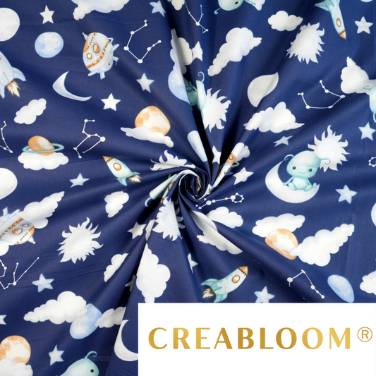 Tissu coton Motif extraterrestres dans l'espace - fond bleu marine
