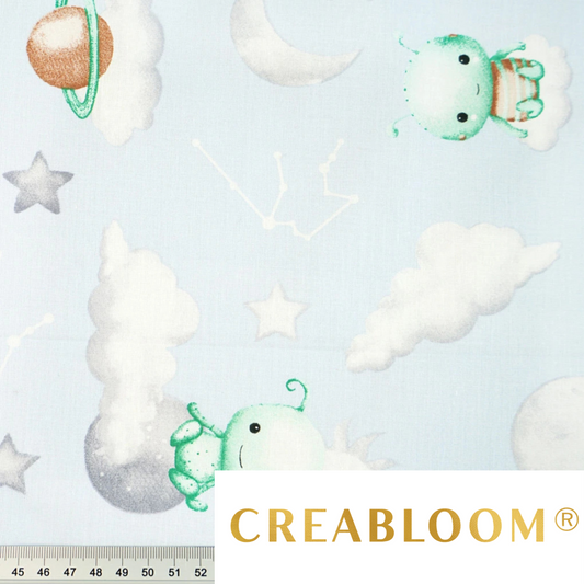 Tissu coton Motif extraterrestres dans l'espace - fond bleu