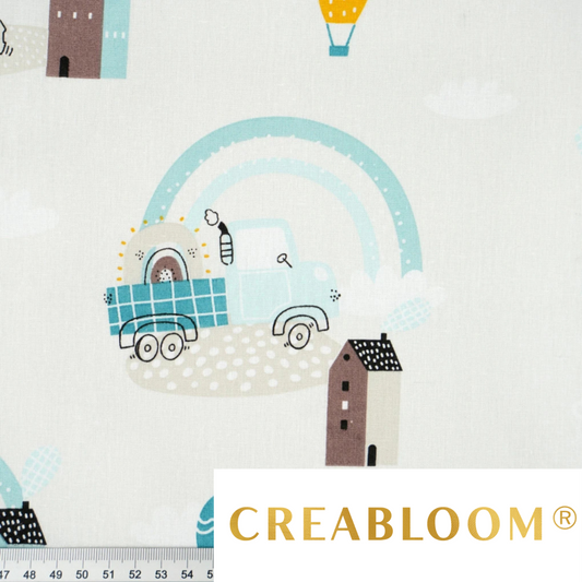 Baumwollstoff mit Baustellenfahrzeugmuster