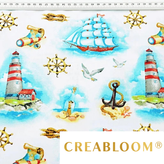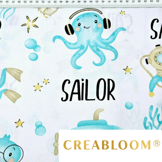 Tela de algodón con estampado de nubes y lunas - fondo menta