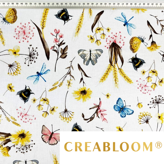 Tela de algodón estampada con grandes motivos de dientes de león - beige sobre fondo blanco