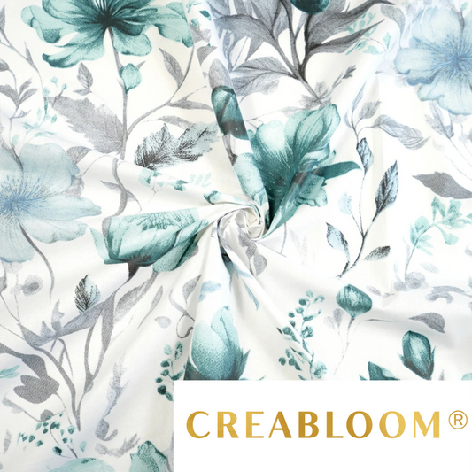 Tela de algodón estampada con grandes motivos de dientes de león: gris y beige sobre fondo beige/gris