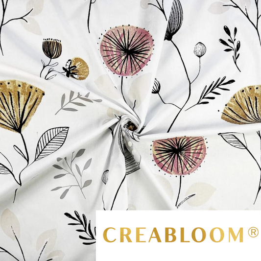 Tela de algodón con estampado floral en color crudo/pastel