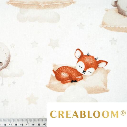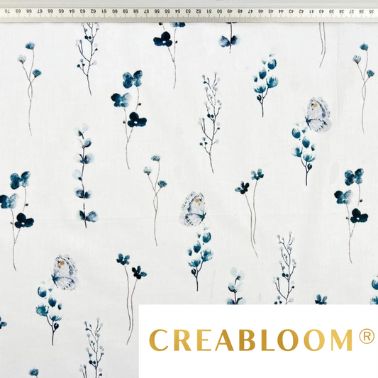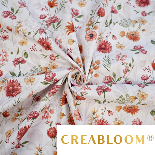 Tissu coton imprimé grands motifs pissenlits - beige fond blanc